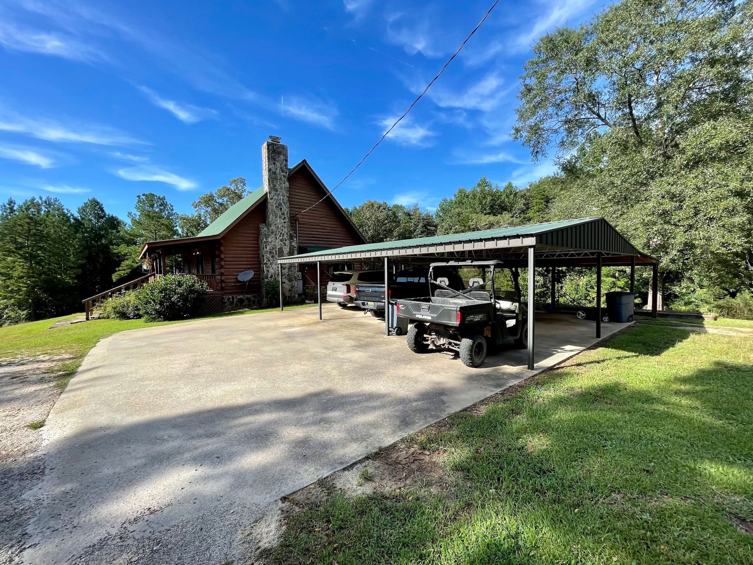 It’s hard to know where to start when talking about a property with so much to offer. From the moment you pull off of the old country road and into the gated drive, it feels as if you are immediately removed from the busyness of the outside world. This property offers a tremendous opportunity to the avid outdoorsman or family alike looking for a new hunting camp, a weekend getaway house, or a new place to call home. The road system throughout this property allows for unique access to almost every corner of the farm. As you drive through the roads of this beautiful property, you will see a mixture of timber that consists of younger and older hardwood, pine, and cedar trees. When winding through these roads, you will also come to three different green fields that have been recently planted and set up with shooting houses and feeders in place. One of the best views on the whole property can be enjoyed while sitting on the front porch of the gorgeous log home overlooking the lake. This home offers two bedrooms, two full baths, and a bonus room upstairs that has the capacity to sleep up to eight people. In the winter months, you will not only be able to kick back and enjoy the warmth of the wood-burning stone fireplace but also enjoy a relaxing dip in the jacuzzi on the back patio. To the side of the home, there is a detached three-car garage that provides space for the vehicles or ATVs you may have for riding around the farm. This property also offers an open barn useful for storing equipment along with an attached shop area to use as needed. This piece of property is all-around exceptional and located in the northeast part of Chambers County. Call today to schedule your private showing or have any questions answered that you may have about this property.