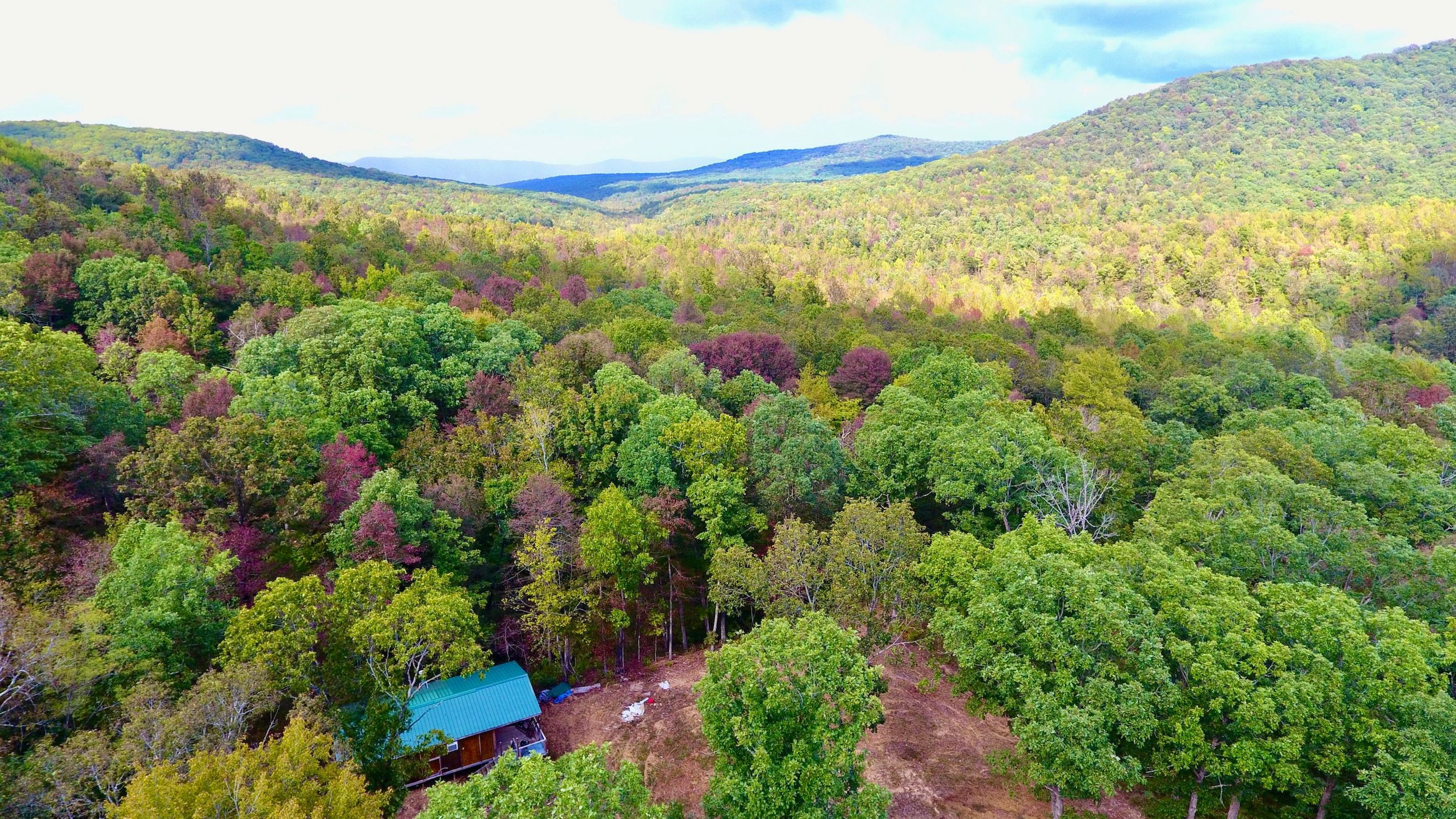 If you are daydreaming about having a great place to escape to with beautiful mountain views, rolling creeks, super cool “off-grid” cabins, and excellent hunting bordering national forest, then you have found it! This piece of Ozark Mountain heaven is located off Highway 16, just a short drive east of Fayetteville, situated down a forest road, and borders the Ozark National Forest on one side. Follow Possum Creek to the property and enter a gate to approach the first rustic cabin. It has a living and kitchen area along with an additional room that could be used for sleeping and bunks. It is a perfect place to get out of the weather. The second cabin is located a little further down the trail. It has a large living and kitchen area and two bedrooms, and an excellent wood-burning stove is the primary heat source, and it will keep it toasty in the winter during the hunting season. Speaking of hunting… The deer, bear, and turkey hunting is superb, as evident by the trail cam and harvest photos from the past few years. Hunt the creek bottoms, one of a few food plot areas, or the wide hardwood benches. There are many excellent natural funnels, pinch points as well as thick bedding areas. Easily access the National Forest for thousands of acres of public hunting and riding as well. The trails connect with the very popular Mill Creek OHV for world-class four-wheeling on side by sides, four-wheelers, and Jeeps. Enjoy lunch, dinner, or get essential groceries at either the Pig Trail Café or Combs café but don’t forget to gas up there as well. This place is truly special. If you are looking for this type of recreational property, please give me a call today to schedule your private tour or driving directions. Do not hesitate; it will not last long!
