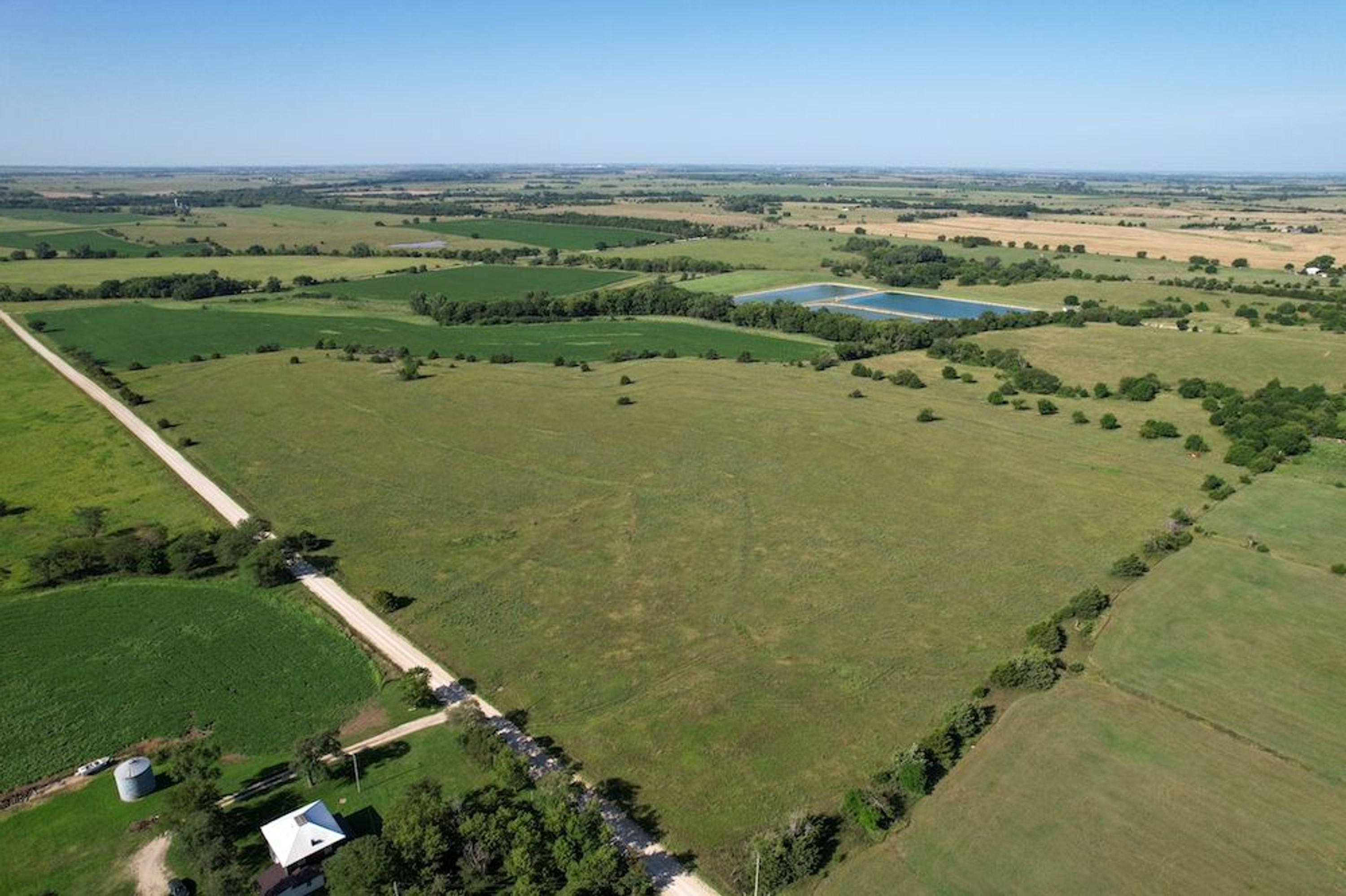 Tract 3 is a combination of CRP, hayland and native pasture that recently underwent brush management through an EQIP contract to improve grazing quality. It includes a pond and livestock well, with a second quarry pond offering recreational potential. Wildlife habitat is strong, and the existing electric and old well near the quarry create an outstanding rural homesite option.