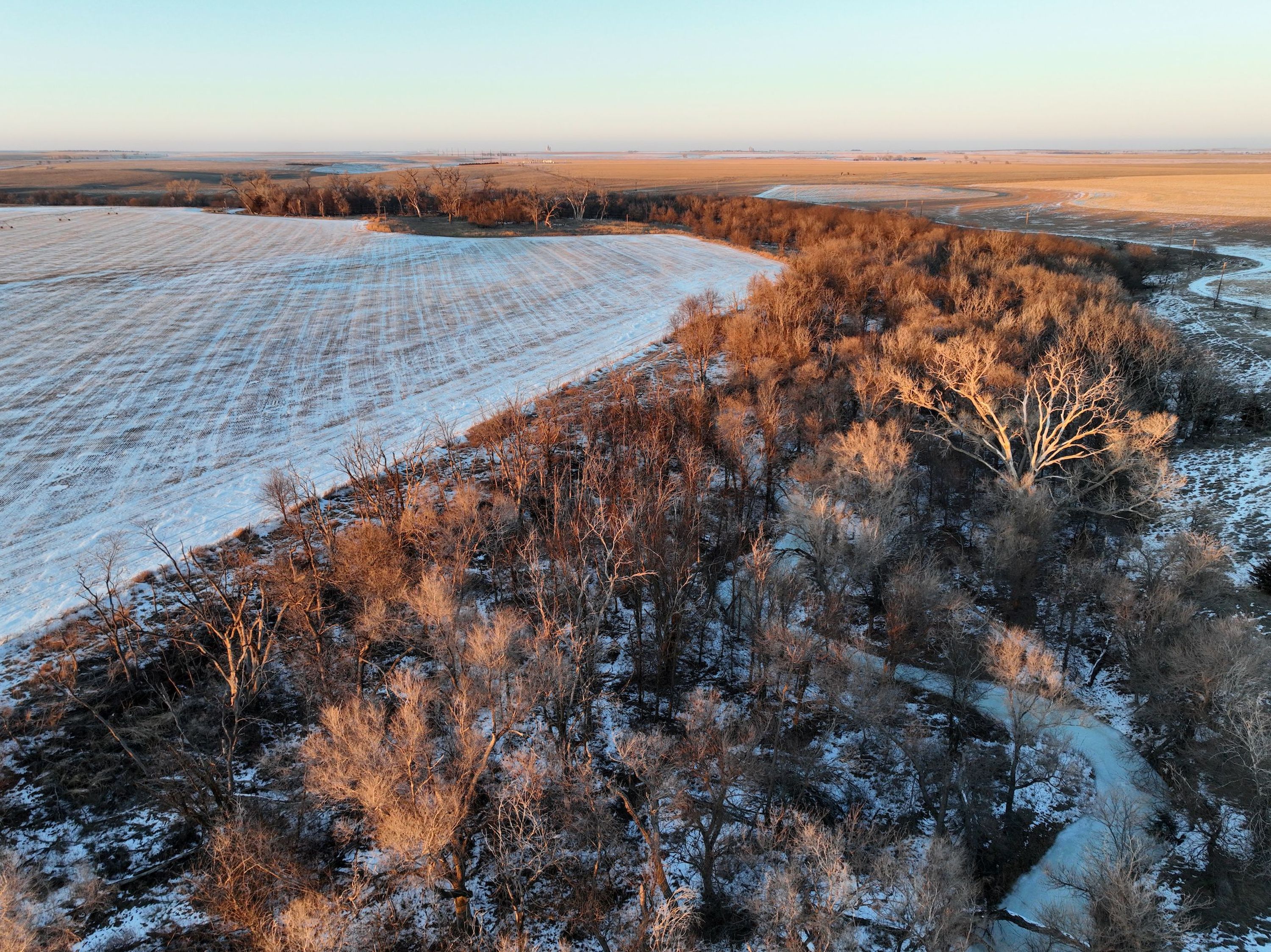 There aren't many quarter sections in NW Kansas that check as many boxes as this farm in Trego County. With over ½ mile of immense tree cover along Big Creek, live water, pivot irrigated and dryland alfalfa, fenced grassland with a large pond dam, a great location, and 100% mineral rights intact and transferring to the buyer – what more could you ask for?