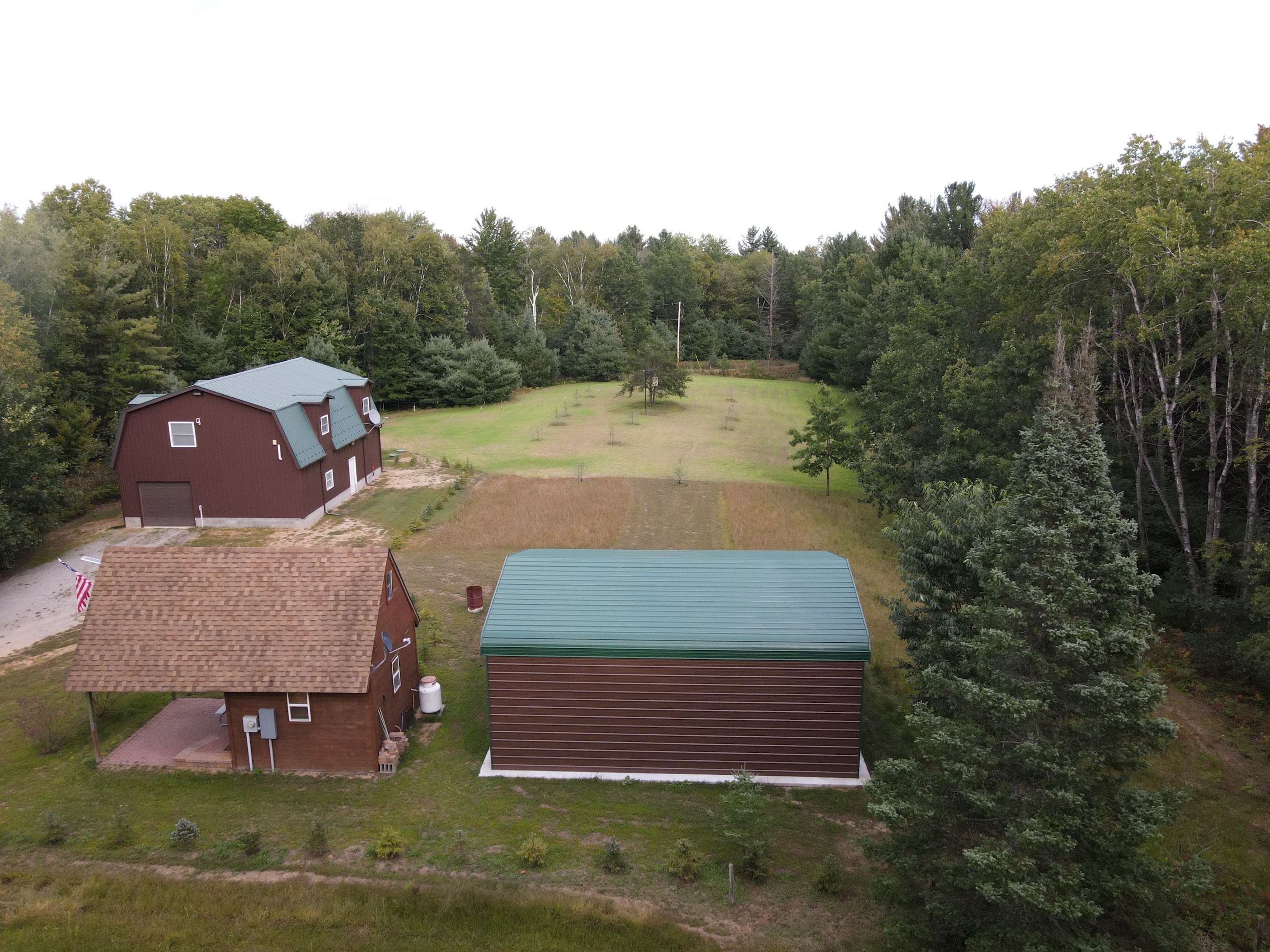 The additional 12' x 12' chalet with a 12' x 24' upper loft is perfect for your overflow of guests. The new 24' x 30' storage building with cement floor and overhead door is perfect for even more storage of tools and equipment. As a bonus, at the front of the property, there is an older trailer home that has no value but is believed to have a working well and septic.