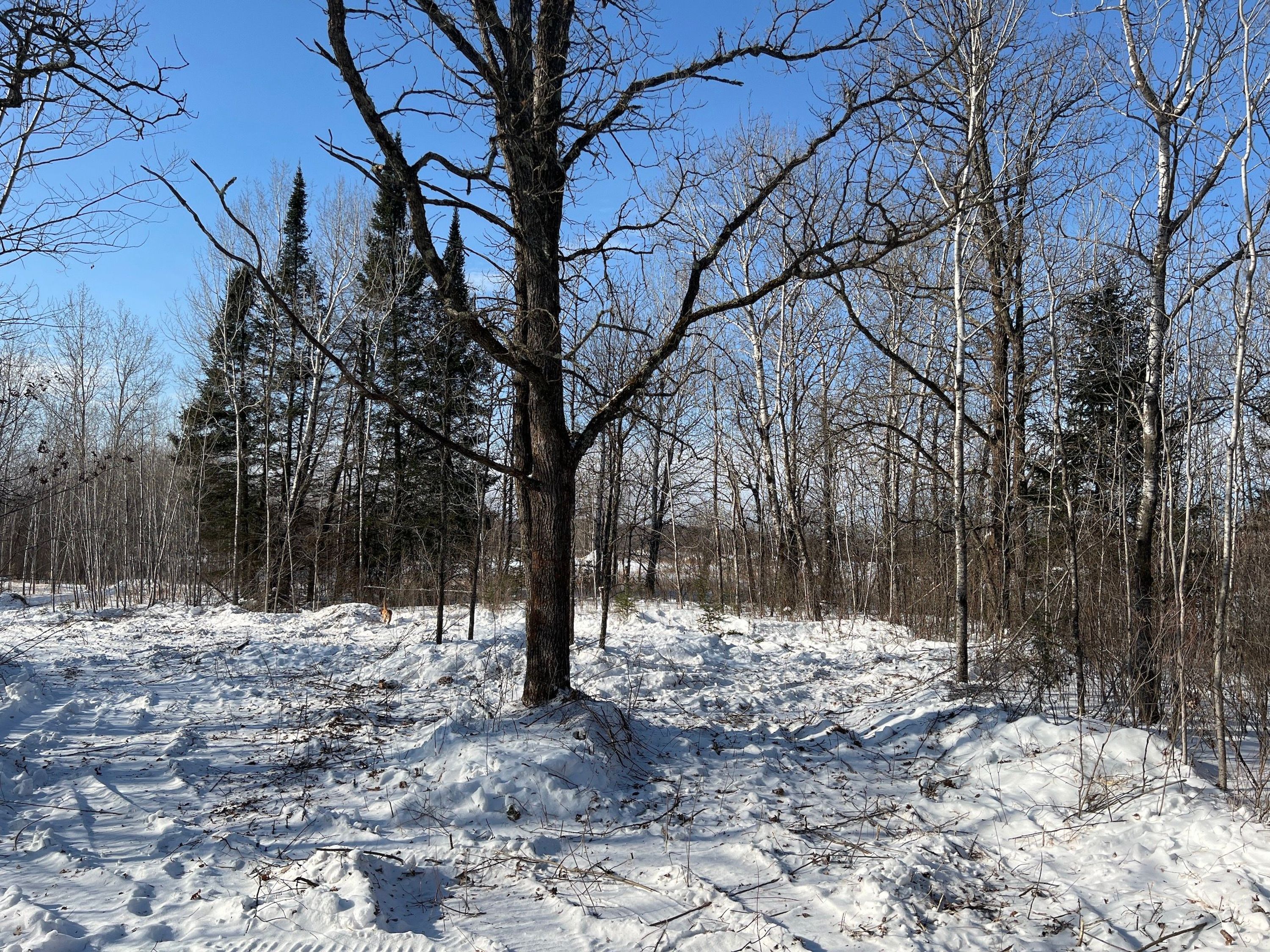 Here is a quality hunting property with diverse habitat to support all kinds of wildlife. There is a trail coming off Pioneer road, and it leads you back to a small clearing. This clearing would make for a nice spot to establish a basecamp. From there the trail winds through the timber and comes to another small clearing. This would be a great spot for an archery stand as there are several mature oak trees and also some thick aspen regeneration nearby. The trail then takes you across some grasslands to the SW corner of the parcel to a nice ridge that has some scattered mature white oaks and lots of thick surrounding cover. There is about a â…“ acre clearing back there, and with a little work could easily be made into a quality food plot. Most of the timber on the western half of the property is scattered mature oak trees and thick aspen regeneration. The east side of the parcel is a largely thick Tamarack forest, perfect for holding all kinds of wildlife on the property. Hay creek also flows through the back of the parcel creating additional habitat that is beneficial to all types of wildlife. The neighboring agricultural fields provide the local deer herd with plenty of food, while the property's diverse habitat provides plenty of bedding cover to keep the deer around.