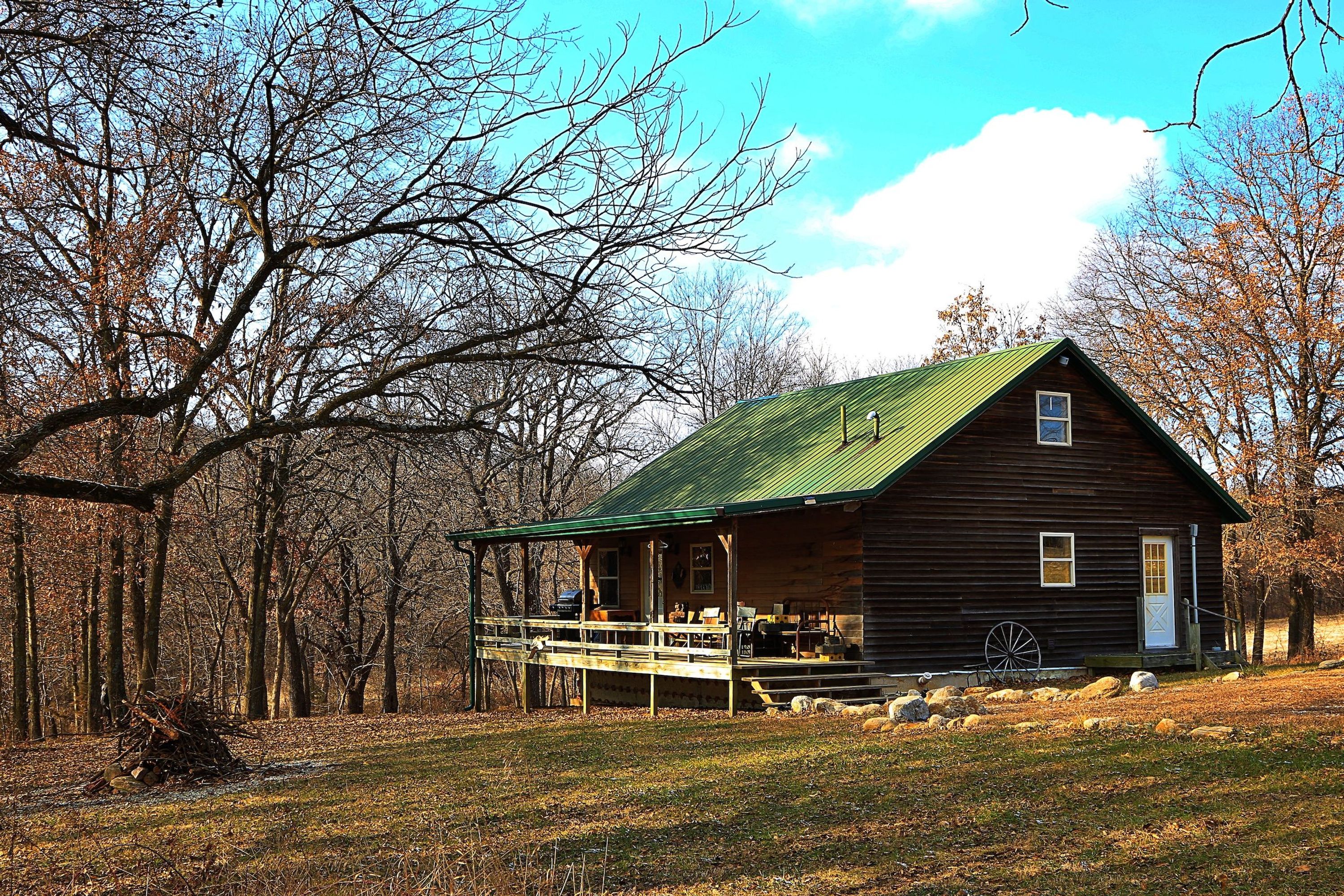 Here's a turn-key hunting camp with up to 11 different beds and bunks, shop, RV port, crop fields, timber, and best of all, a history Big Bucks! The rustic main cabin really fits the setting thanks to wood siding, a metal roof, and a wrap-around deck on 2 sides. It overlooks a creek between the timber and the crop fields, with deer and turkeys often seen from the deck. Most of the living space is on the first floor including living room, kitchen, bedroom, ½ bath and ¾ bath. Upstairs is a loft, currently configured with 4 single beds. The other cabin is a 1 bedroom bungalow with living room, kitchen, bedroom, storage room, ¾ bath, and an oversized front deck. Both houses have electricity, and water storage tanks (not currently served by a water well, or water utility.) Other buildings include a 30x40’ml RV Port, and a 48x28’ml shop with concrete floor, electricity, and a bunkroom/storage room. Approximately 18 tillable acres have been rented on shares, while most of the rest of the farm is wooded. There’s also plenty of public hunting and fishing just a few miles away at Grand Trace Conservation Area, Harrison County Lake, and Wayne Helton Conservation Area. This private property is shown exclusively by appointment only. Please call, text, or email today to set up your private tour.