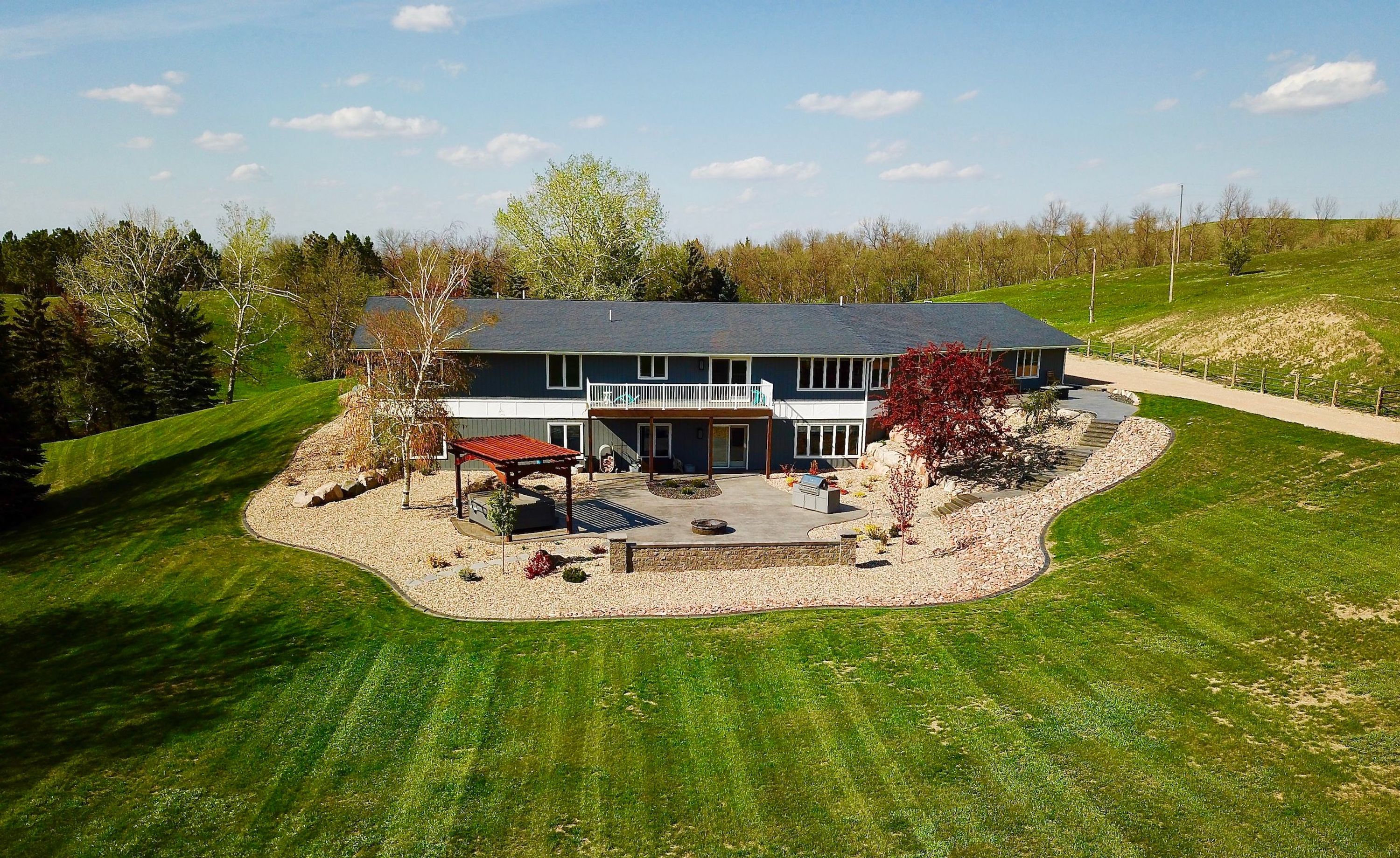 The attention to detail and quality of every aspect of this property is simply amazing. It starts with getting there when you drop down into the draws on Minot’s southeast side. Leaving the flat farm ground behind, you enter a different world of hills and brushy draws that come alive with animals and seclusion. There is no gravel to take or dust to deal with as the paved driveway leads right to the front door or the five-bedroom, 3.5-bath, 5,040-square-foot home that has been meticulously kept up and cared for. The wide open floor plan and numerous windows give the main floor a bright, clean feeling, and with the kitchen island, wide bar top, dining room, and den area, there is no shortage of space to host people. The large maintenance-free deck off the dining room adds space to enjoy the sunsets and views of the large backyard. The lower level is much the same and has been recently completely renovated. It is another home inside a house with a fully equipped kitchen, two bedrooms, a bathroom, a dining area, an island bar, and a fireplace, to name a few of the amazing features. There are two heating/cooling zones in the home, one for the main floor and one for the lower level, so everyone always stays comfortable no matter where they are. Both furnaces are new, the pressure tank is new, the central air is new, and a new reverse osmosis system is installed, so the cleanest and best drinking water is there for you, and the list goes on and on. So many features and of the highest quality throughout give this home enjoyment and peace of mind. The attached three-stall garage is insulated, heated, and finished, so your vehicles and toys stay warm and dry with plenty of room for projects and tools. Moving outside to the back of the house and garage is the stunning patio area. Professionally installed stamped concrete, blocks, pavers, boulders, and landscaping make this look like Better Homes and Gardens cover. There is a fire pit area, a gas grill area, and a hot tub area, all easily accessed from the walk-out door of the home's lower level. Along the access road behind the house sits a 24’x40’ barn/man or woman cave. The front half is insulated, finished, and heated with a storage area. The back half is set up for cold storage with a concrete floor. It’s the perfect area for a play house, exercise room, storage, or a variety of other things. In the rear of the yard is a chicken coop with power and a thermostat for keeping critters safe and warm. There is an enclosed chain link fenced area attached to the shed, and it would be a perfect dog kennel because there is also an underground dog fence around the yard with three collars that will go with it. To top all of this off is the location. It feels like you are hours away from a city, but you are only minutes from the city, and its amenities are under 5 miles away. The demand for rural properties that have acreage within a few miles of a city is high in demand. This property is not only that but is incredible and has the “wow” factor everywhere you look. Call me today for more information about this amazing property and opportunity.