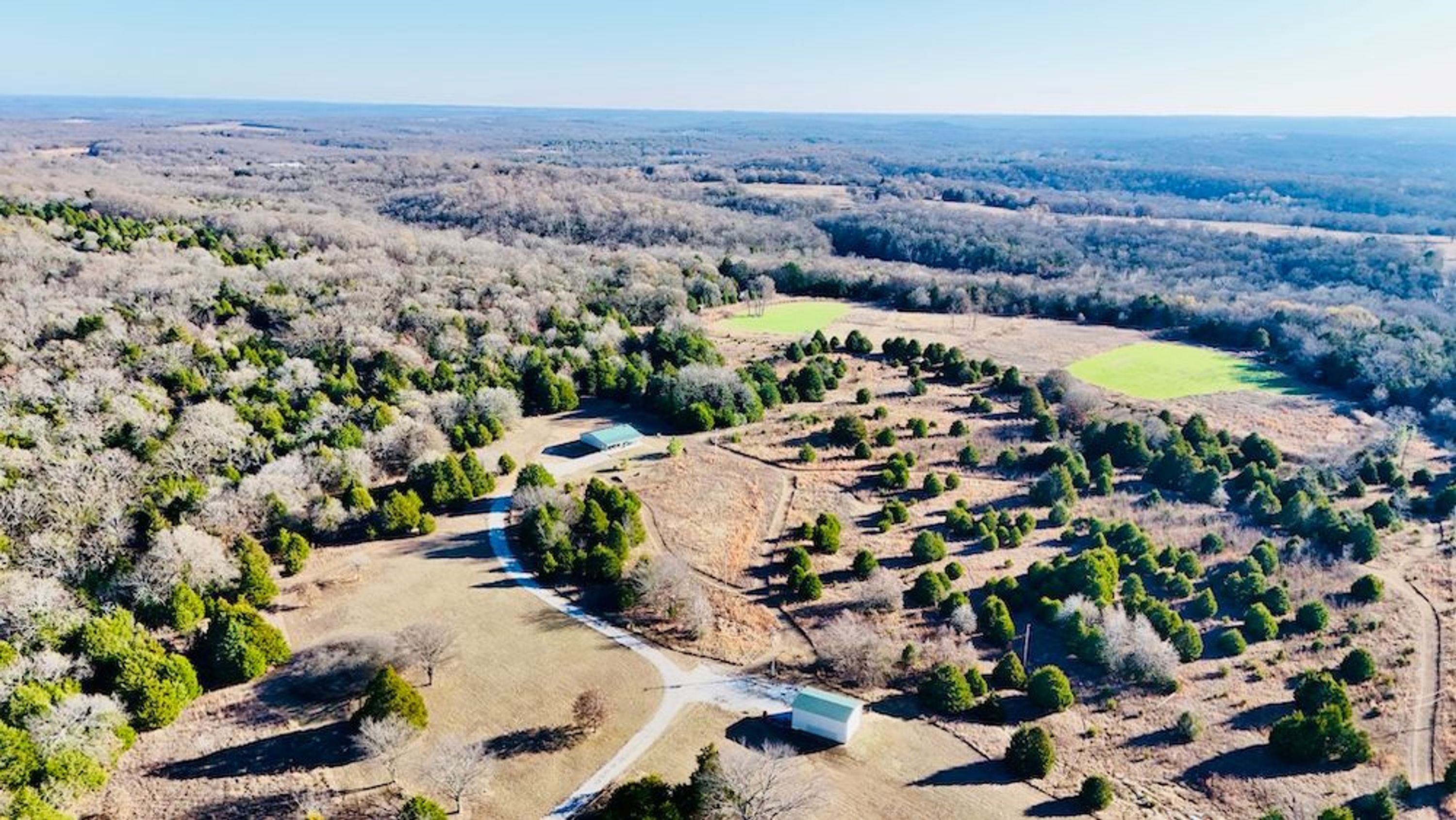 Located in Seminole County, this 80± acre property offers a blend of recreational use, hunting features, and comfortable living accommodations with convenient access just 6 tenths of a mile from Highway 56. The tract includes a 1,200 square foot barndominium home with three bedrooms and one bathroom, supported by a well, septic system, and electric service. Central heating and air provide year-round comfort, making the residence suitable for full-time use or as a hunting cabin. Nearby, a 20X30 equipment shop offers enclosed storage for tools and gear. The property sits within a short drive of Wewoka, Holdenville and Seminole, offering access to supplies and small town amenities while providing privacy and a rural setting.
