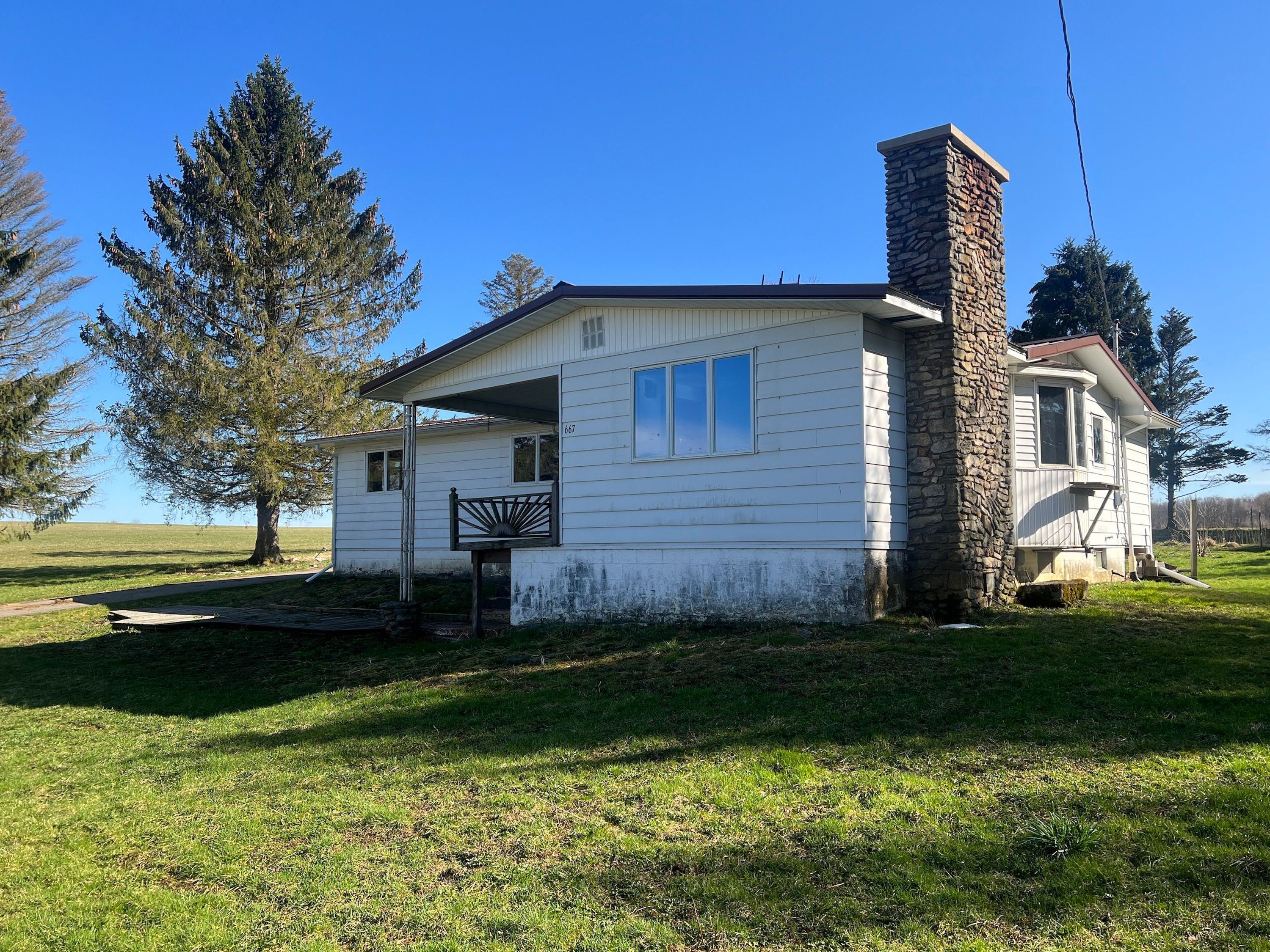 PRICE REDUCED! This is a solid 2-bedroom home that sits on a nice country lot surrounded by trees. The single-story living features a nice kitchen, paved driveway and many recent updates. These updates include new composite flooring, a newer metal roof, an electric panel and hot water heater. The attractive kitchen has a good amount of storage space including a very nice pantry. The large great room in the center of the house offers nice views of both the front and rear yards and could be a great place to entertain. The living area has a stone wood-burning fireplace which is the only current heat source in the home. The bedrooms are fairly small but functional and one includes the washer and dryer hookups. On the rear of the house is a large entryway that can be used for additional storage or an outside entertaining area. The back porch is the perfect place to sit and enjoy the summer evenings while watching the wildlife in the neighboring fields. There are also two nice outbuildings to store your tools and equipment. With some fresh paint and a little TLC, this home has nice potential! Reach out to the listing agent with any questions or to schedule your private tour!
