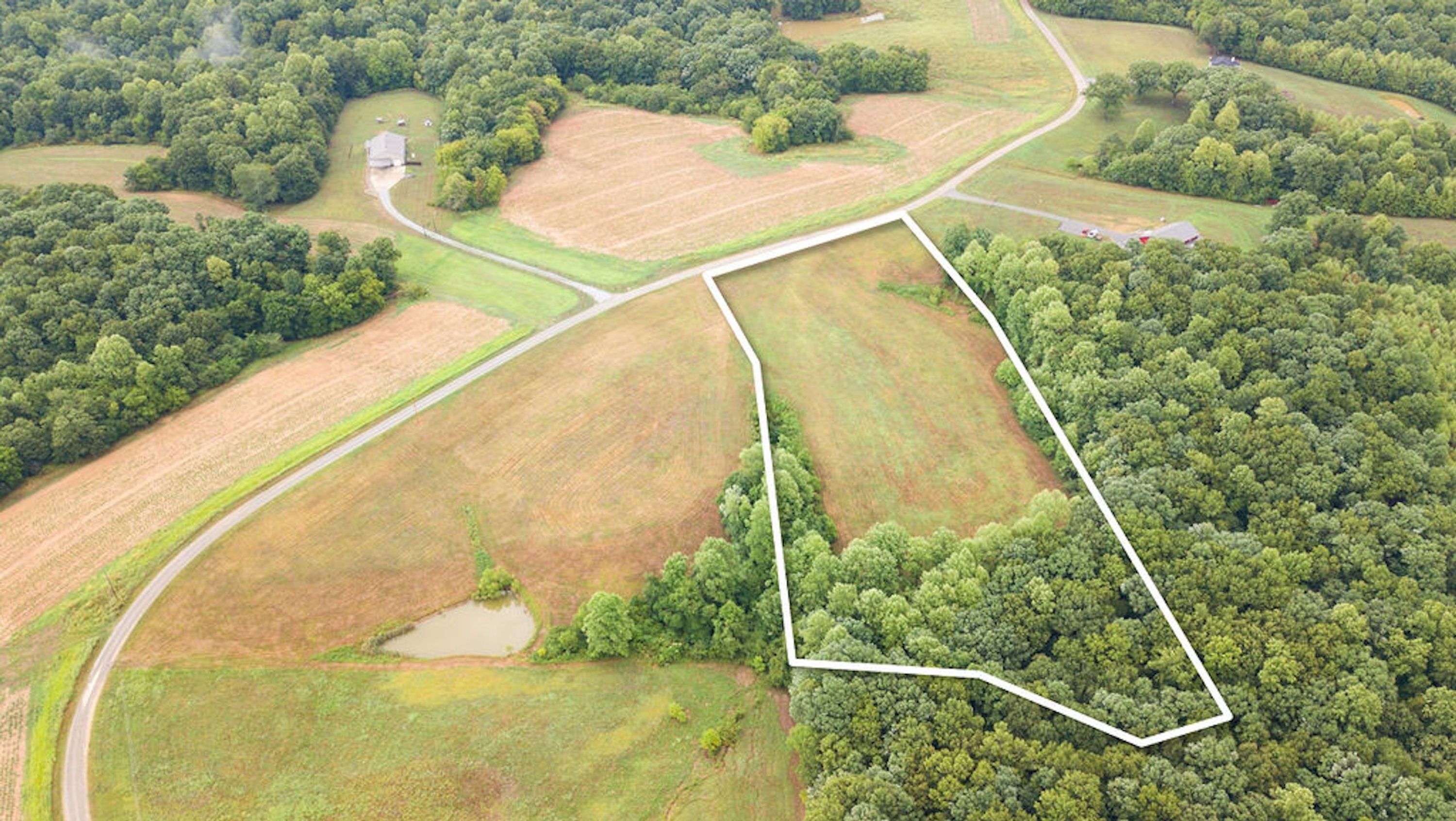 Beautiful flat building tract close to Clarksville and Ft. Campbell. Multiple possible building sites with a current perc test approved for a four-bedroom house. A small pond that can easily be enlarged. Good mix of hardwoods and open ground. Also listed as a whole tract or split into two tracts, survey pending.