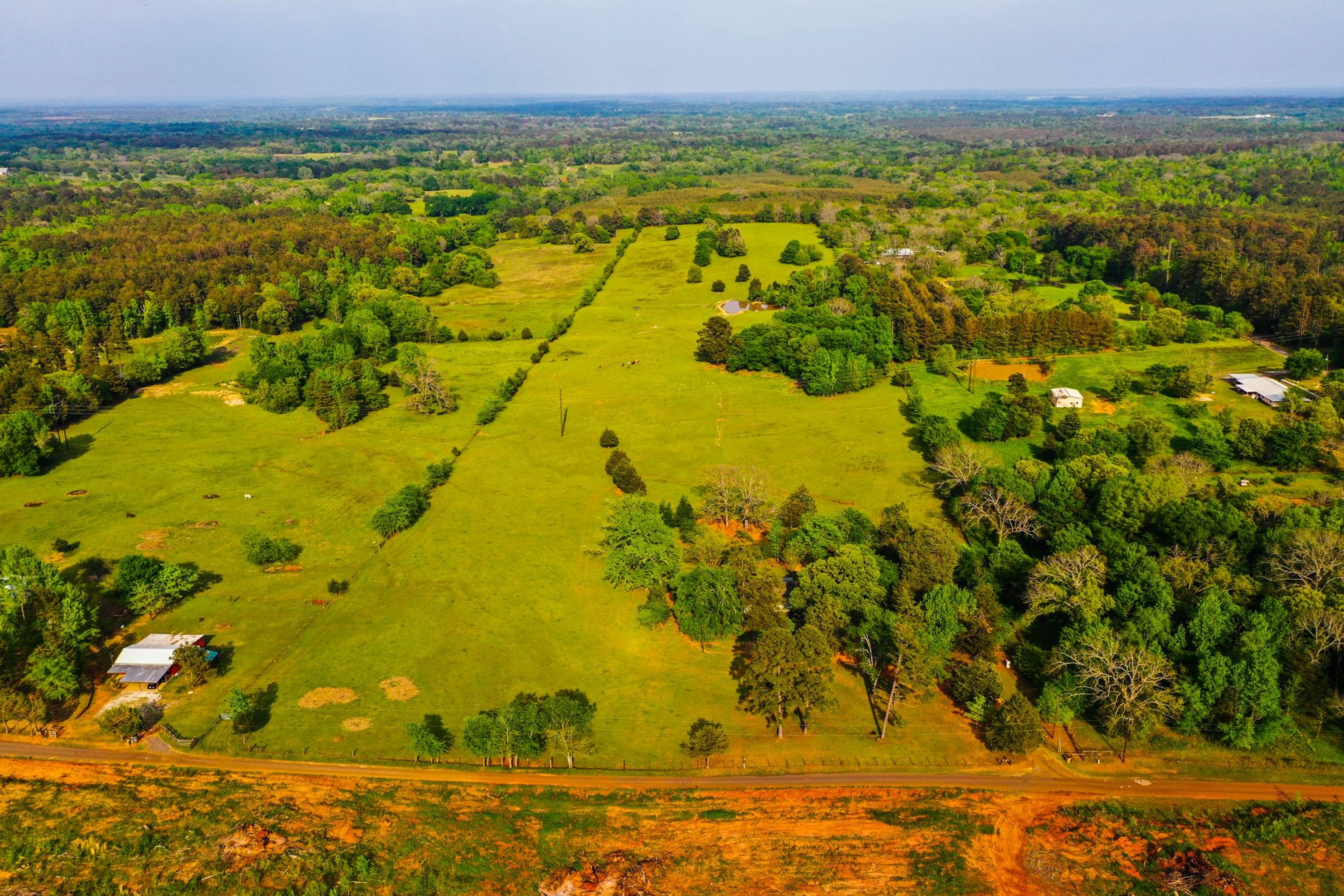 This property is rectangular in shape and mostly open/improved pastures with a small pond, scattered large trees and a small house that with some updates would make a nice retirement home or leave it as is for a rental and build your dream home in the rear of the property taking advantage of the good views and solitude. The home was reportedly constructed in 1984 and was reported (by the appraiser) to have approximately 1,449 square feet of gross living area. It is a small wood-frame home on a pier and beam foundation with two bedrooms and one bath. There is an older barn/shed that is utilized for storage and as a carport. The property has good perimeter fencing and has been used in years past for cattle grazing. Call today for your private tour of this property.