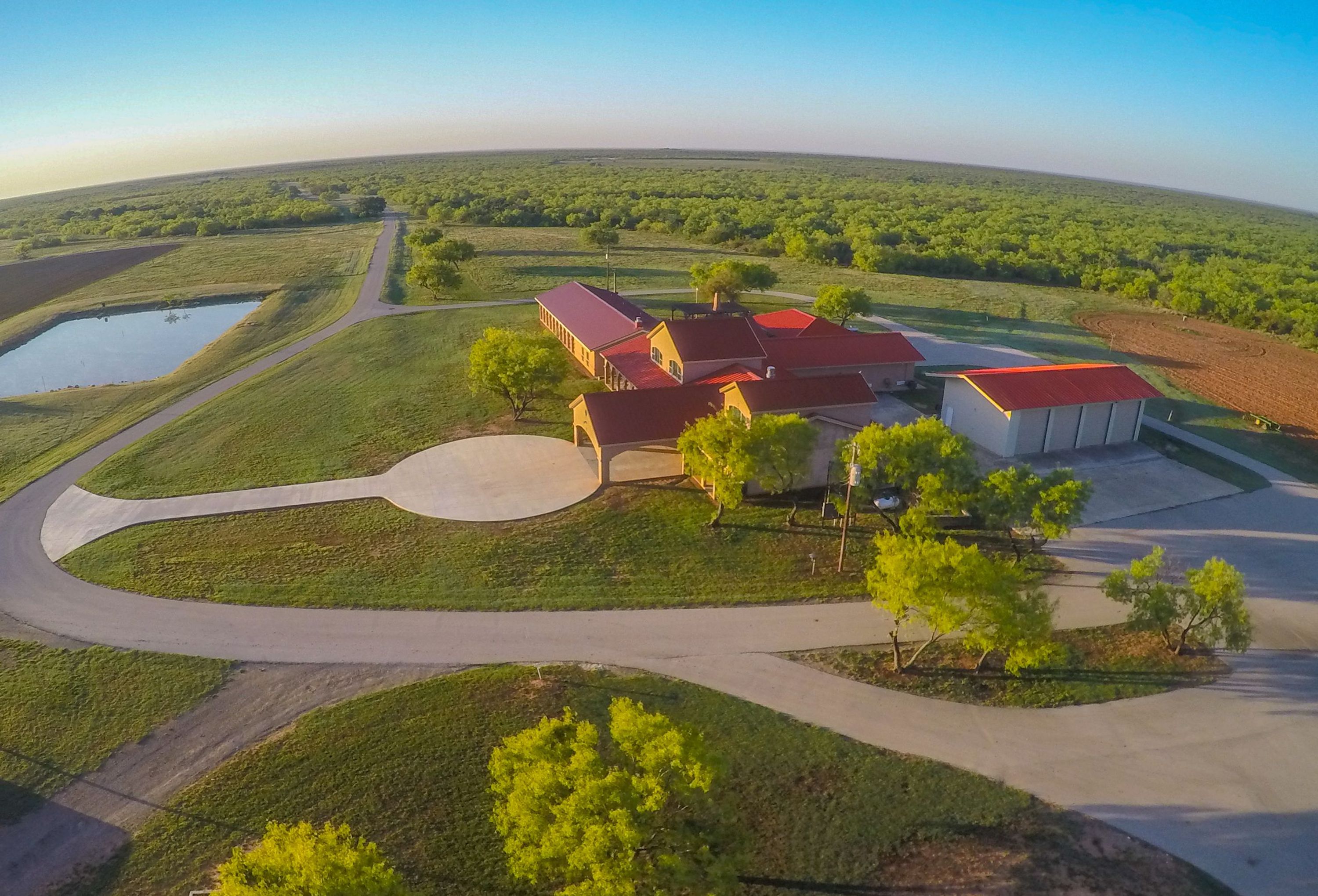 Double Dime North: The Double Dime North possesses a magnificent headquarters with 2 miles of paved road from the entrance gate to the main residence, hunters lodge, and more than ample equipment and shop space. The recently updated main residence has a Spanish-style, stucco exterior and is 5,260 sqft of living space with 5 bedrooms and 5 bathrooms. The home has high-end finish out with an open floor plan and two wings of the home to separate the master bedroom from the rest of the living space. The open layout contains a beautiful kitchen and dining area, and large living room with a towering stone fireplace.