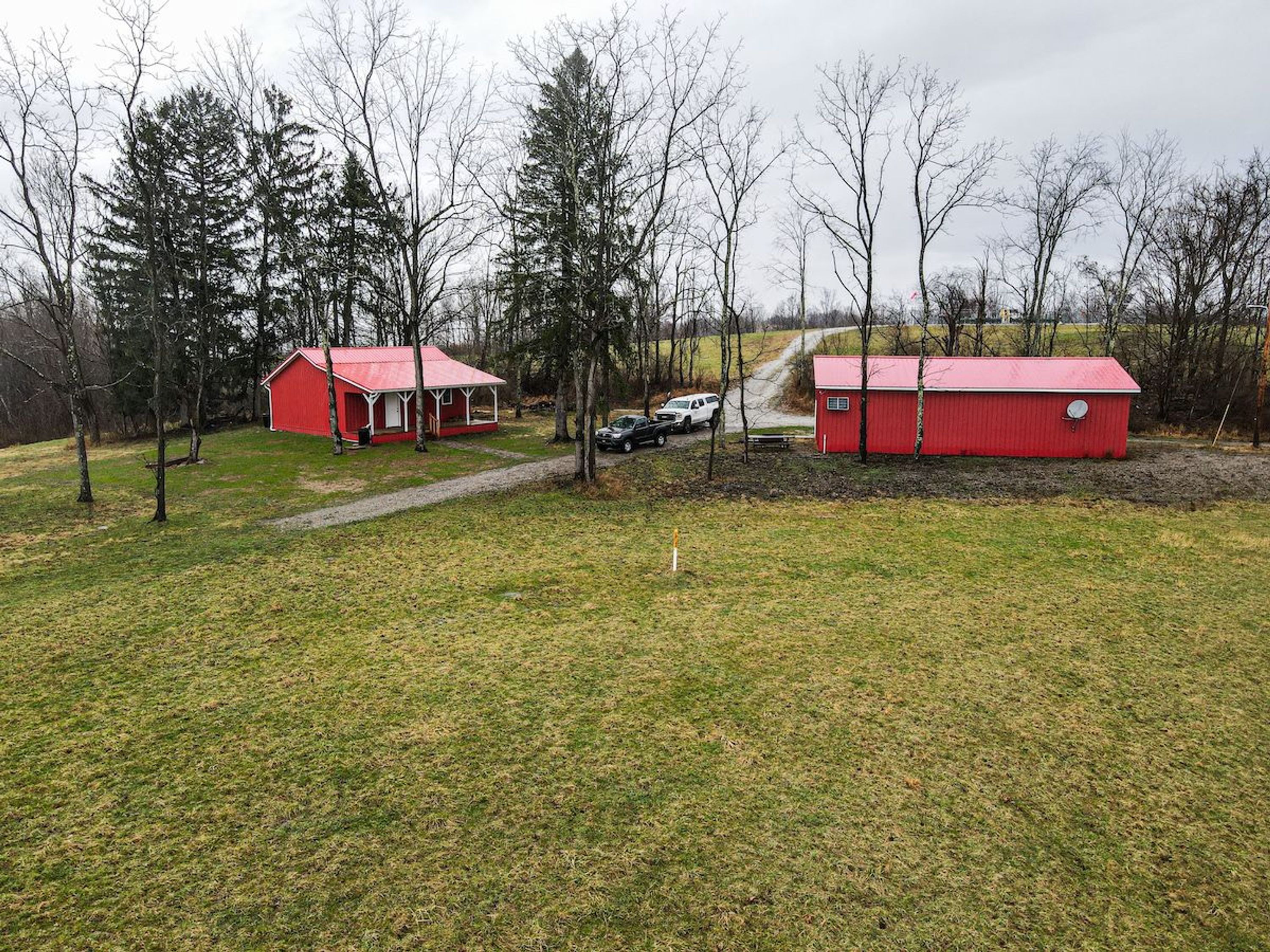 PRICE REDUCED! The cabin in Wolf Run is a stunning setting with a new cabin and 4-bay garage setting amongst rolling fields and good timber. As the name indicates, the landscape is beautiful, overlooks the mountains and valleys with timber stands below, and is absolutely gorgeous. As you enter the well-maintained road over 3/4 a mile long, there are beautiful fields and woods on both sides. As you wind your way to the cabin, you can't help but feel peaceful and private as you are tucked away in the mountains. The cabin was finished within a couple of years and has a half bathroom. Electric is to the cabin and garage, and a private septic is at the cabin. The water is used creatively. It is gathered from the rain into plastic drums that pump back into the cabin for use in the toilet and kitchen. Nestled in the impressive stand of timber, the jewel awaits you to create your dream getaway in the mountains. The property has +/- 30 acres of pasture ground that could be used for food plots or livestock. There are two tractors being sold with brush hogs in this sale. Both tractors are practically brand new with less than 90 miles on both of them. (Massey Ferguson 1739E & GC1723E) The wild game is numerous and consists mainly of whitetail deer & turkeys. The land lies in a way that allows most of the property to be usable and huntable. This place is prime for the hunter, outdoors person, a weekend nature lover looking for that cabin in the woods or a vacation destination. A feeling of tranquility and peace falls over you as you meander the lush timber stand as if you were one of the pioneers who first saw the land hundreds of years ago; it truly is spectacular! Places like the cabin on Wolf Run just don't come along often. Book your private showing today.
